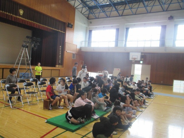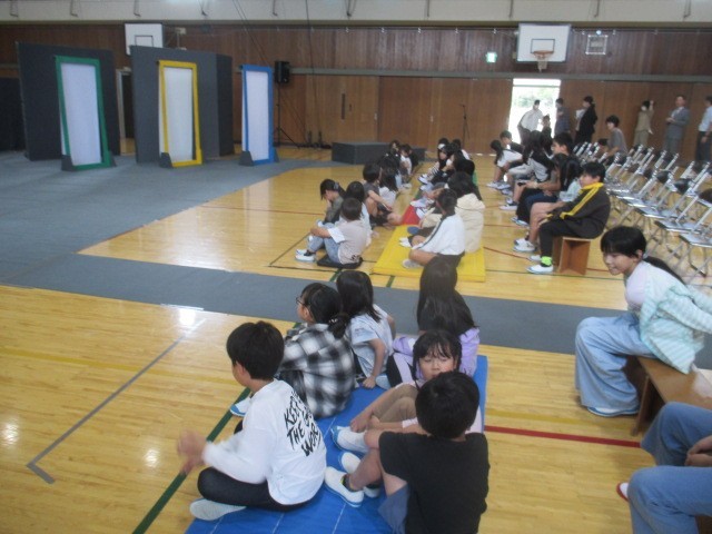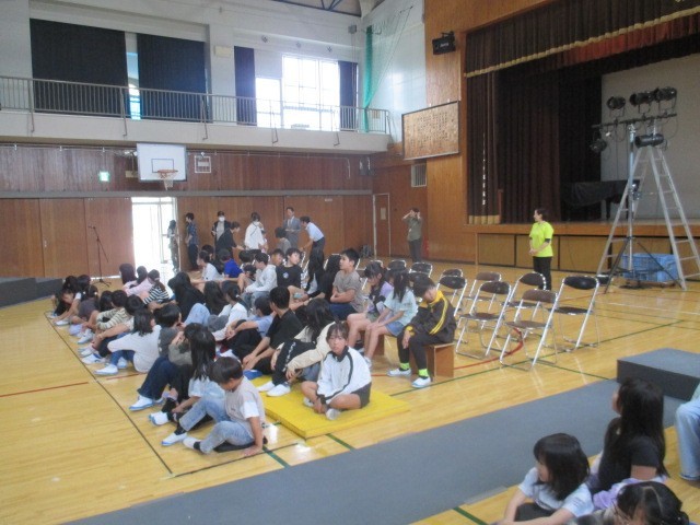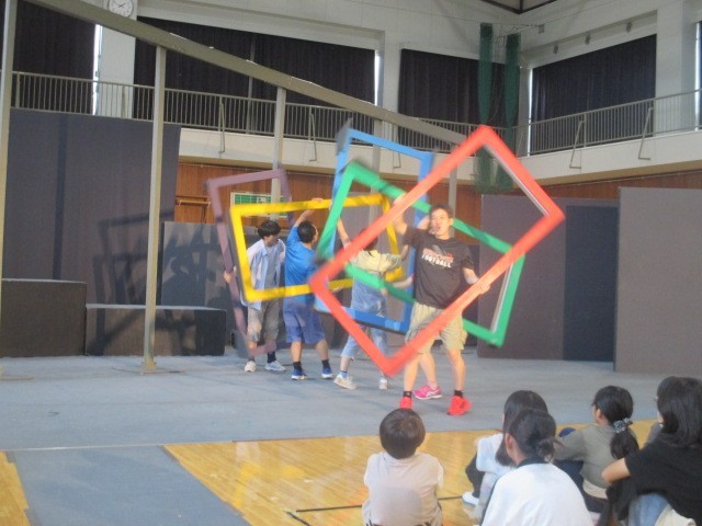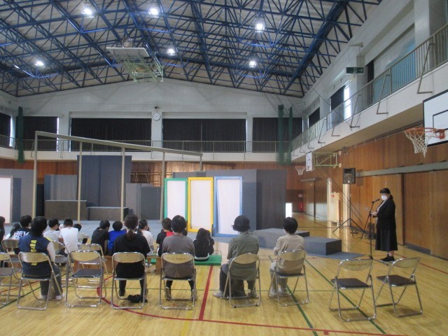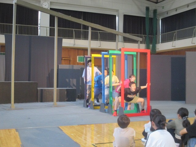 本日、学校巡回公演で劇団風の子中部「ギャング・エイジ」がありました。劇の最後に4・5年生が参加しました。