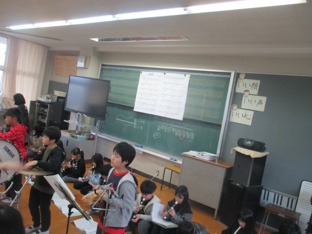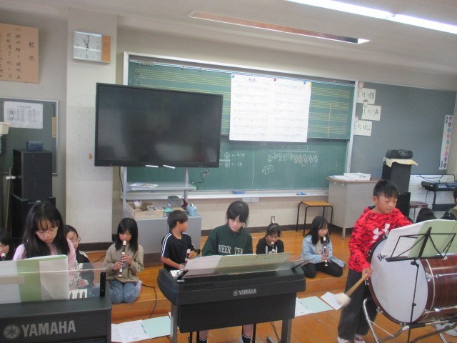 音楽の時間に3・4・5年生が集まって合唱と初めて合奏を合わせました。これから一緒に練習する機会が多くなってくるので今よりもっとそろってくると迫力ある合奏になってきますね。みなさんがんばってね♪