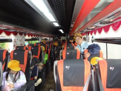 バスの中では、クイズやカラオケで盛り上がっていました。