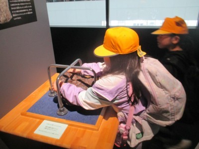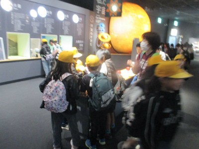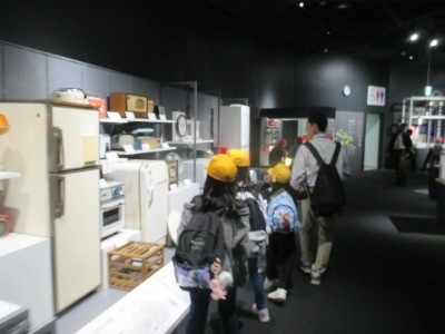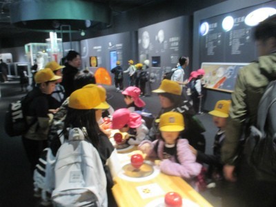 お弁当・お菓子タイムの後は、午前中に回れなかった階へ行き体験、見学をしました。お腹いっぱいになり、午後も楽しく活動していました。