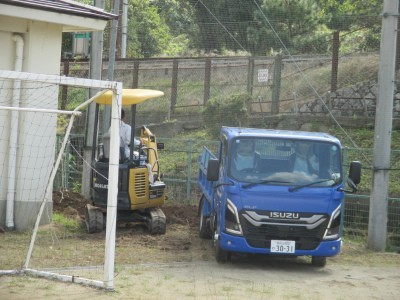 11月3日月曜日の学文路小学校150周年イベントに向けて西山建設さんが体育館南側の土をショベルカーで整地してくれました。