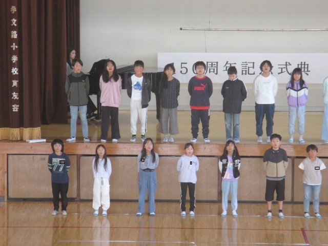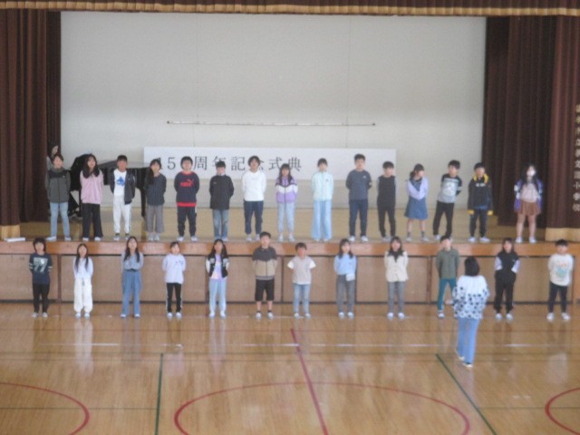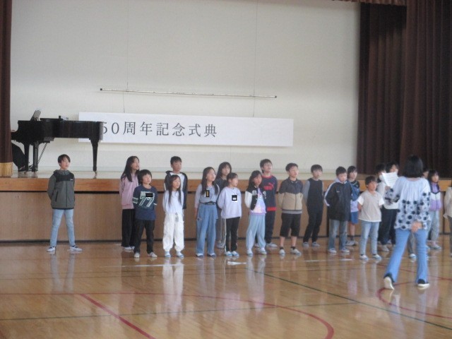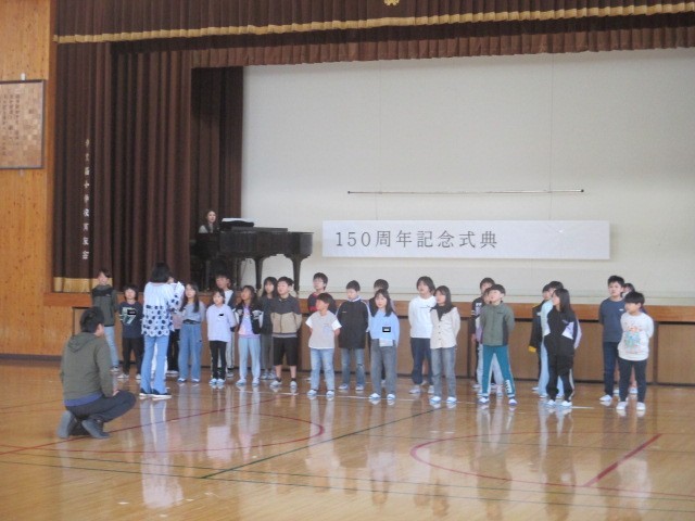 3・4・5年生の音楽では、150周年で鈴木彩華さんと歌う曲と伊都小中合同音楽祭・150周年で歌う曲を体育館で練習しました。声が響いていい感じでした♪