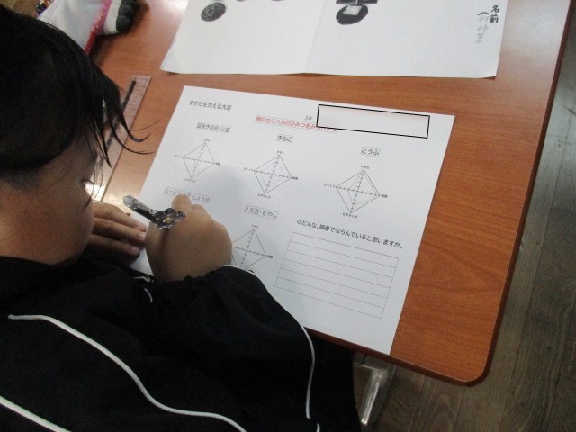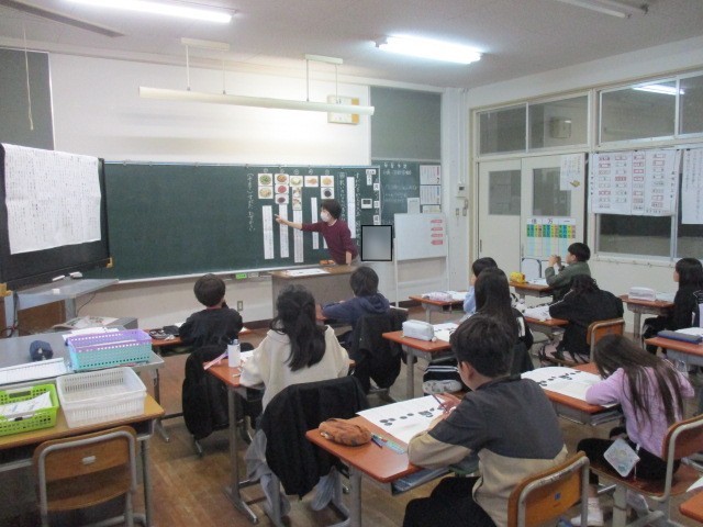 3年生の研究授業の単元は「すがたをかえる大豆」でした。筆者がなぜ、大豆をいる・にる→すりつぶす→主な栄養を取り出して違う食品にする→目に見えない小さな生物の力をかりて違う食品にする→これらの他に取り入れる時期や育て方を工夫した食べ方の順に書いたのか、自分の考えや友達の意見を聞きながら内容を深めました。