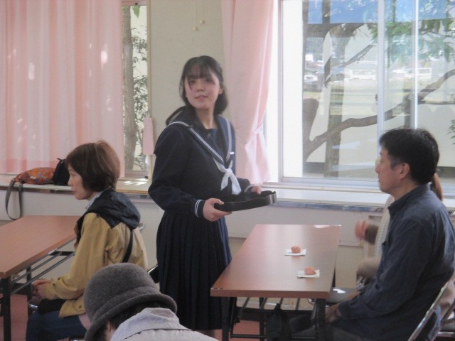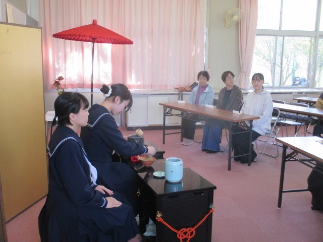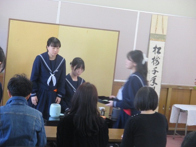 校舎内では、橋本高校の茶道部が来てくれ、湯を沸かし、茶を点ててくれました。たくさんのお客さんが来てくれました。また、教室では、