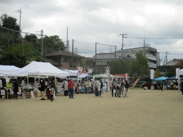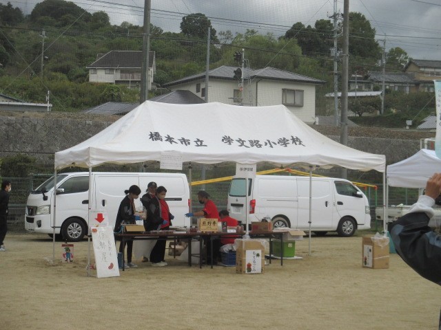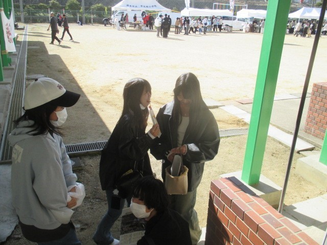 昼休憩では運動場の屋台でお昼ご飯を食べました。お家の人、友だちと一緒に周っていました。卒業生も来てくれ、おおいに盛り上がっていました。
