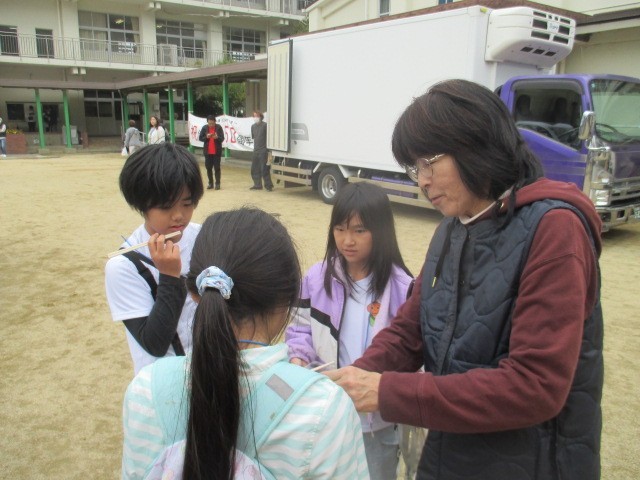 熊野牛について説明の後、児童のみんなに熊野牛を振る舞ってくれました。おいしい熊野牛ごちそうさまでした。