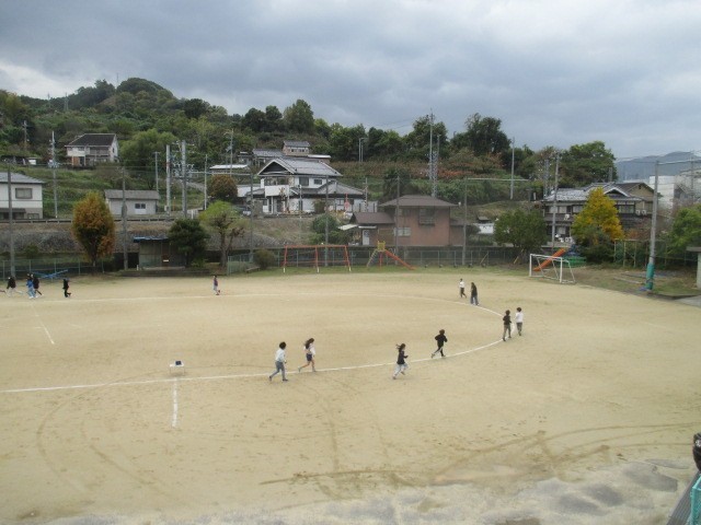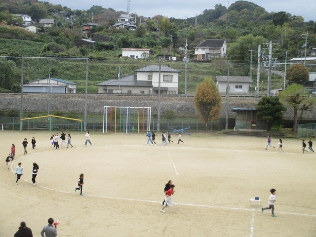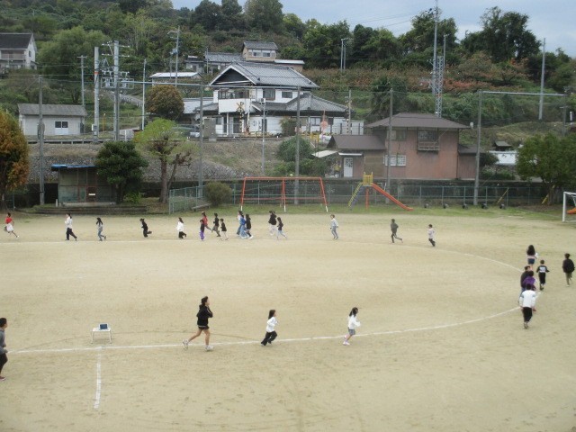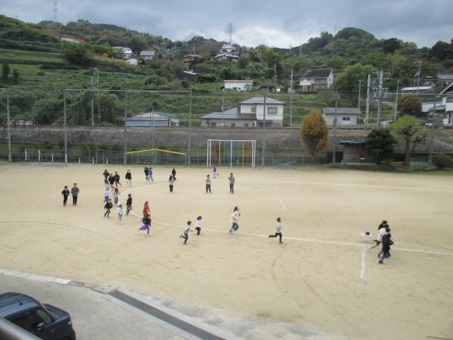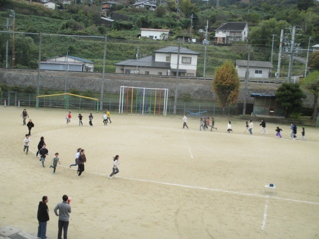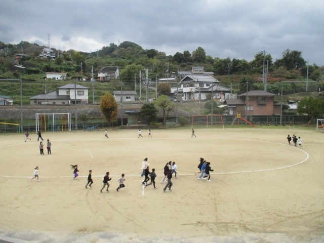 本日からマラソン大会に向けてロング休憩に業間マラソンが始まりました。児童たちだけでなく先生たちも一緒に走っていました。