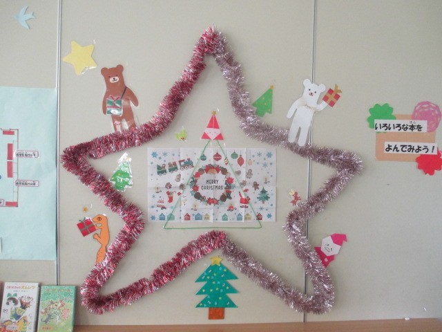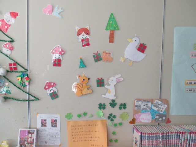 図書ボランティアさんが来てくれ図書室の壁面を冬バージョンに変えてくれました。出来上がりは写真6枚目からになります。ぜひご覧ください。