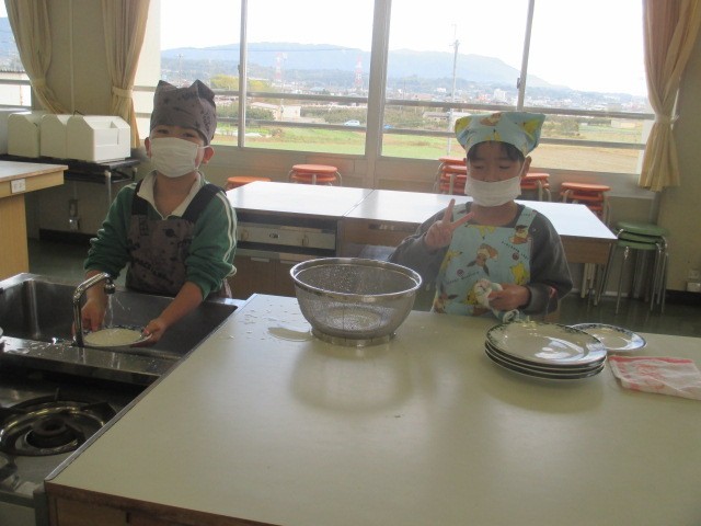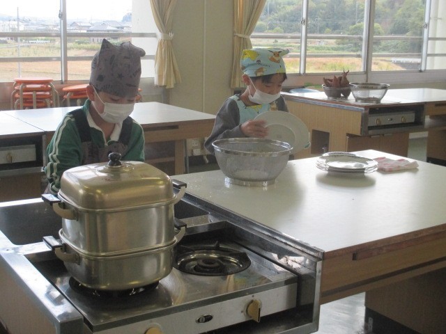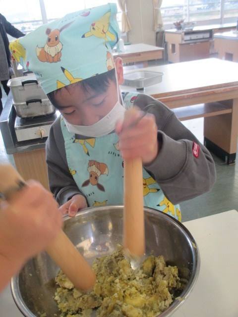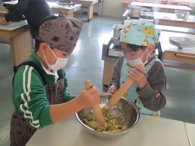 2年生は、以前収穫したサツマイモでスイートポテトとサツマイモ焼きを作りました。1年生は、きのかわ支援学校の1年生と交流でスイートポテトとサツマイモ焼きを作りました。