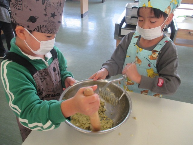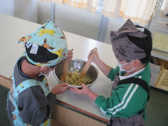 みんな調理に夢中で丸めたり、フライ返しでひっくり返したり上手でした。とっても美味しそうなスイートポテトとサツマイモ焼きができましたね。
