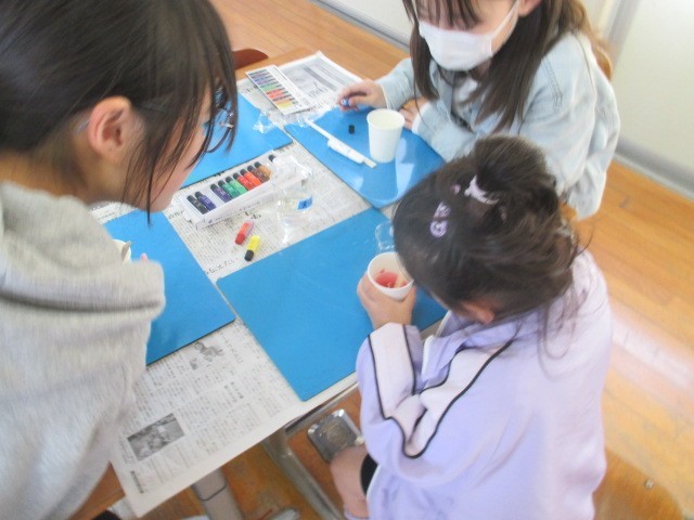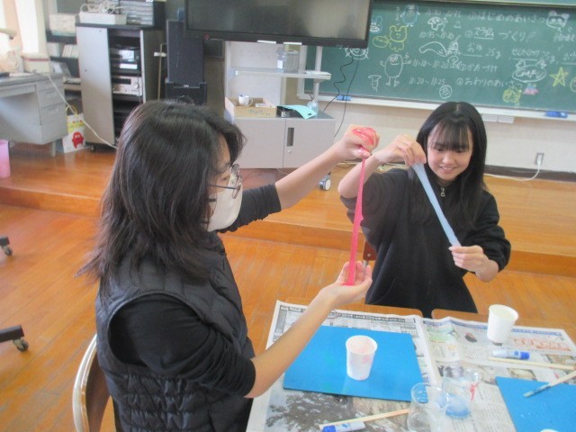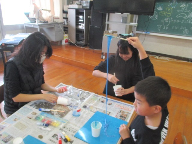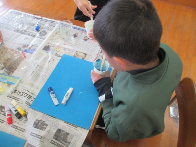 6年生の国語の「みんなで楽しく過ごすために」の単元で1・2年生と一緒に遊ぶために何がいいか話し合った結果、「一緒にスライムを作ろう」となり今日、スライム作りをしました。みんな楽しんでスライムを作っていました。6年生のみなさん、1・2年生のみんなに楽しい時間をありがとうございました。