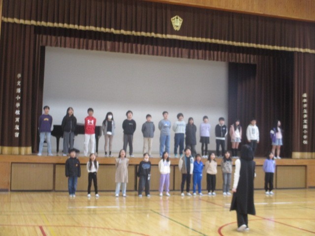 明日、橋っ子音楽会に出場するので合唱の練習をしました。「ありがとうの花」の練習をするのも今日が最後です。明日の本番、みんなの歌声楽しみにしています♪