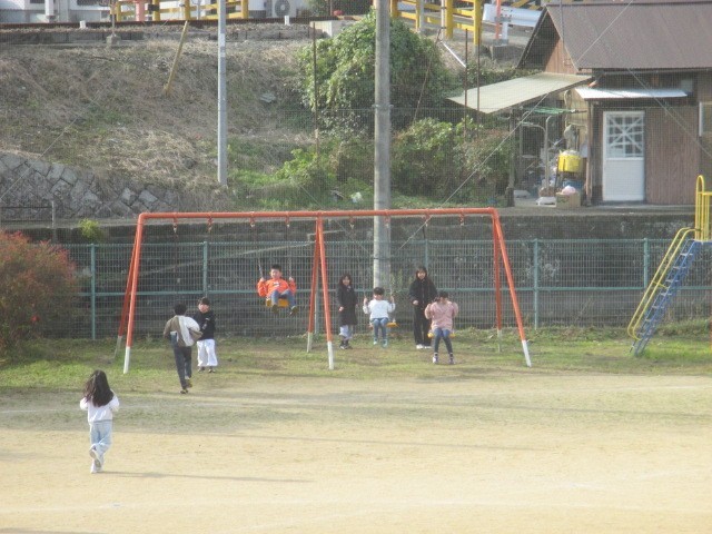 昨日から、ブランコで遊べるようになりました。「今日からブランコで遊べるようになりました。」と放送が入ると、「やった~~♪」という声が教室から聞こえてきました。休憩時間は、ブランコ交代で遊んでいました。みんなすごく楽しみにしてたんですね。