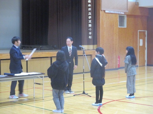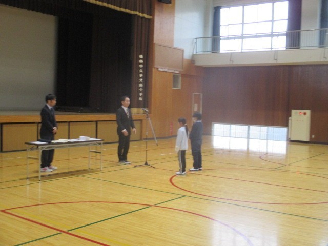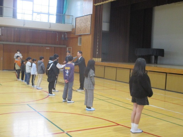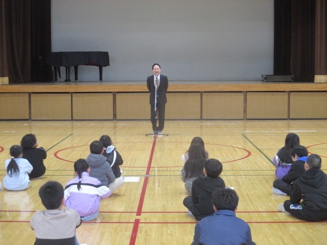 明日から冬休みが始まるので、5時間目に冬休み集会をおこないました。