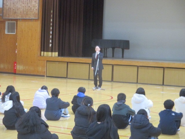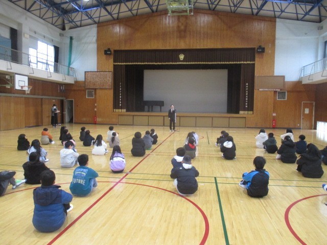 冬休み明け集会では転入生の紹介の後、校長先生から「規則正しい生活をしよう」という話がありました。