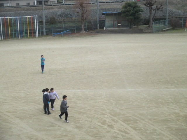 昼休憩の運動場の様子です。昼頃になると朝と比べて気温も高くなってきて運動場で遊ぶ姿が見られました。