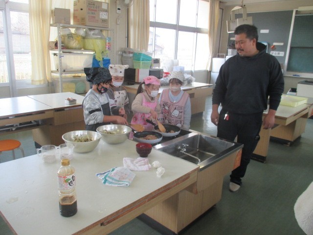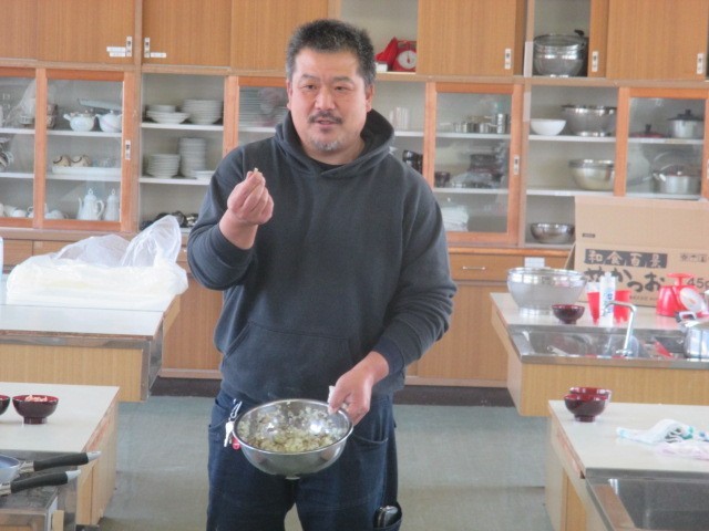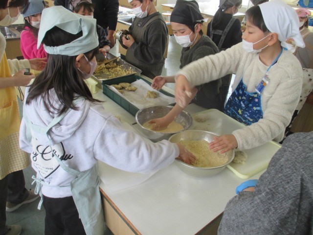 市議会議員の堀内さんを中心に、くにぎ広場のスタッフさんが学校に来てくれ「はたごんぼコロッケ作り」を体験させてもらいました。はたごんぼは、以前3年生が収穫したものを使いました。