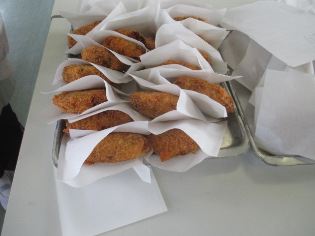 3年生が作ってくれたコロッケがたくさん作れたので、1・2・4・5・6年生と先生たちにも給食の時間に振舞ってくれました。