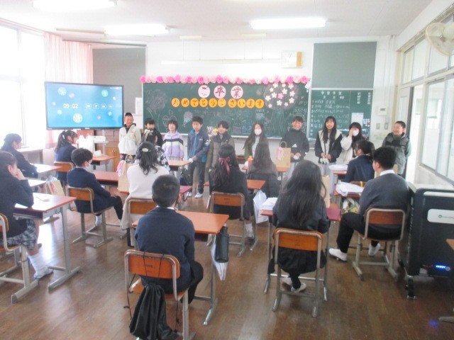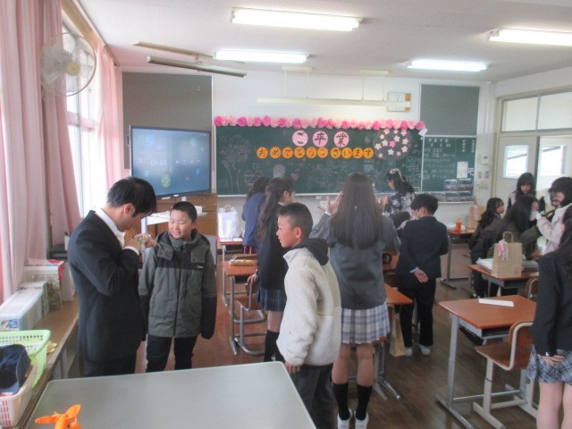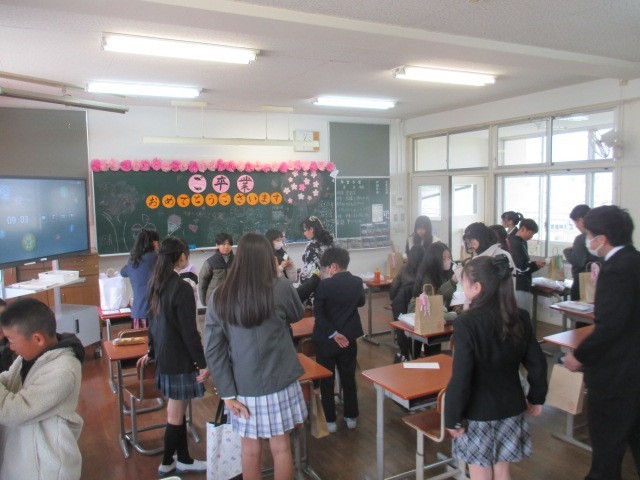 本日、卒業証書授与式が挙行され、卒業生が学文路小学校を巣立っていきました。卒業式前には5年生が卒業生にコサージュを付けに行きました。