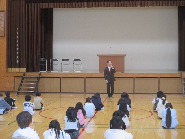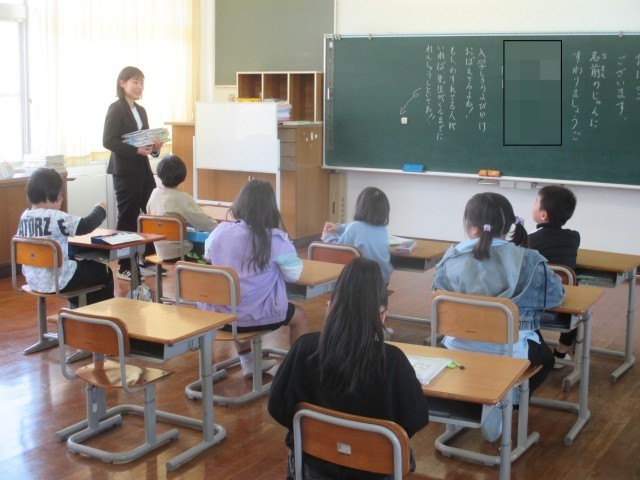 新任式では学文路小学校に転任してこられた先生方の紹介の後、一人ひとり挨拶がありました。始業式で校長先生からお話いただきました。その後、みんなドキドキの担任の先生の発表がありました。
