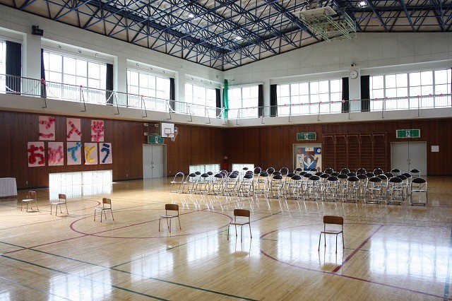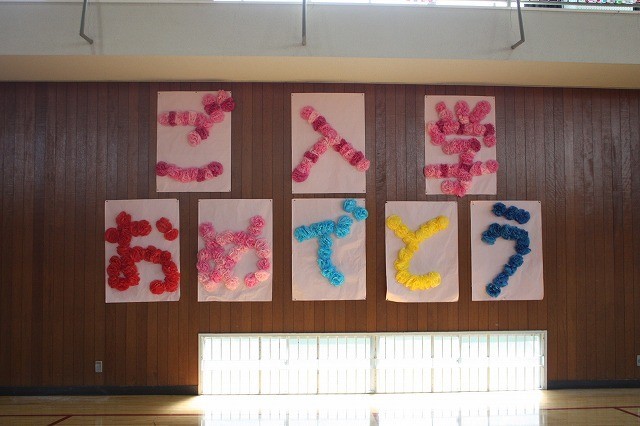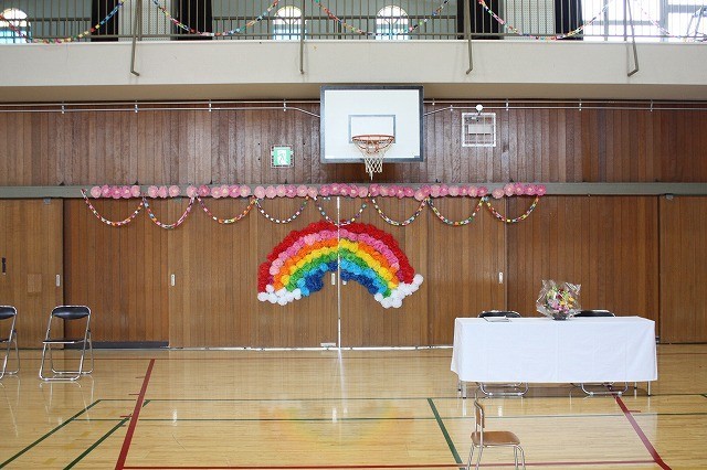 入学式前の準備に向けて5・6年生が会場設営をしました。当日、6年生は新入学児童に胸花をつけたり、教室まで一緒に行ったり、1年教室で緊張しないように声かけをしたりしていました。