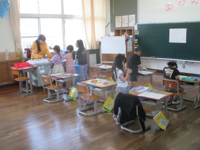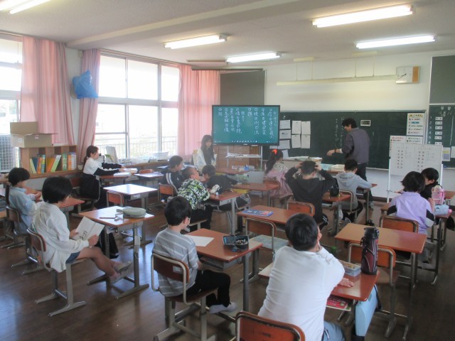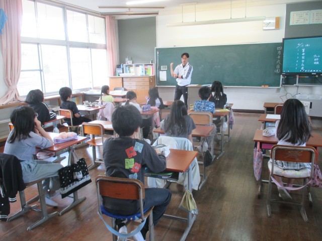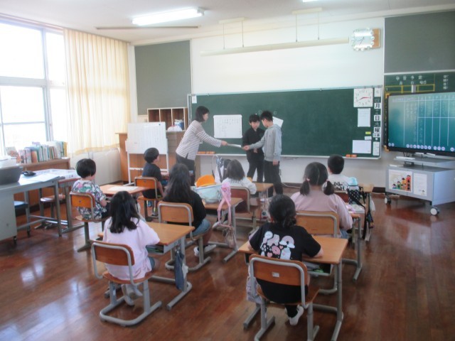 6年生が1~3年生に、明日の朝遊びの計画を説明してくれました。