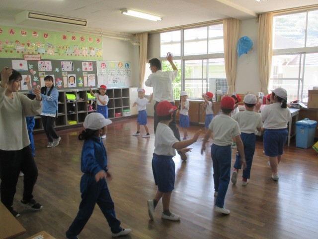 1~3年生は、運動会で踊る「橋本音頭」の練習をしました。