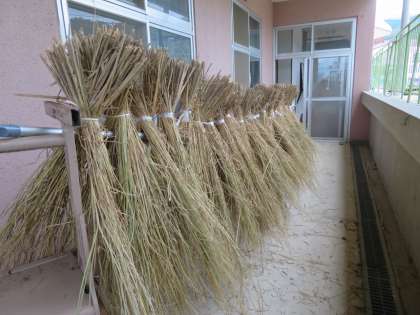 10月12日(木)、地域の方からいただいた稲わらをはざかけしました。11月に実施する「学文路子ども祭り」のしめ縄用の稲わらです。