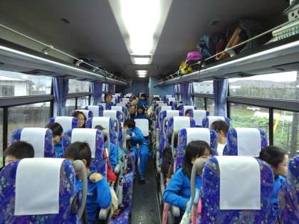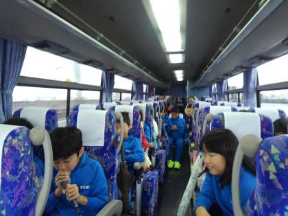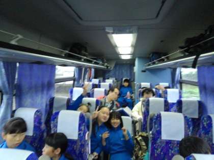 移動中のバスの中です。みんなゲームをしながら元気いっぱいです。