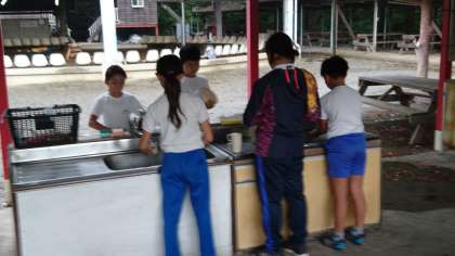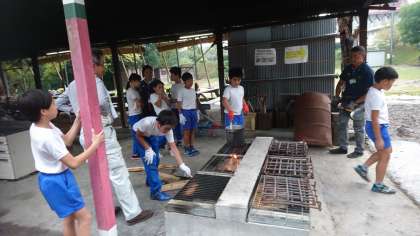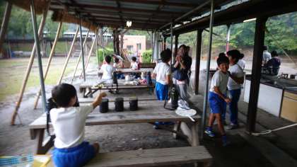 飯ごうで炊くご飯もできました。カレーも出来上がり。そろそろ夕ご飯です。