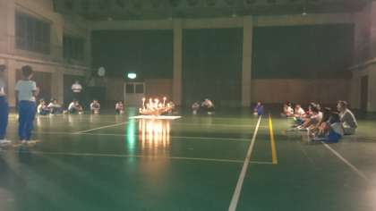 雨のため、体育館でキャンドルファイヤーです。今年は清水小学校さんと一緒に行います。みんな仲良く楽しい思い出になるといいですね。