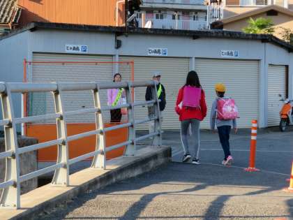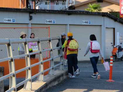 10月9日(火)、秋晴れのさわやかな朝、区長様、PTA役員の皆様による校門前あいさつ運動が実施されました。