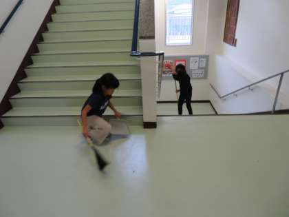 10月10日(火)、お昼のそうじの時間。担任の先生が見ていなくても、集中して、おそうじのできる子がいます。