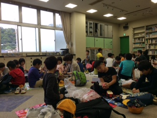 みんなお楽しみの、お弁当・お菓子タイムです。お弁当をしっかり食べてお菓子も食べて。昼からの見学に備えます。