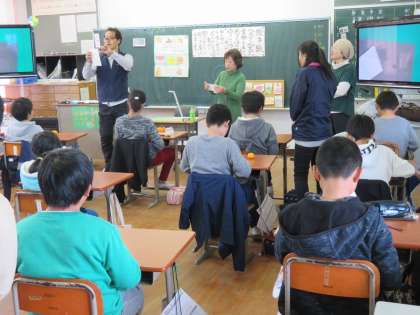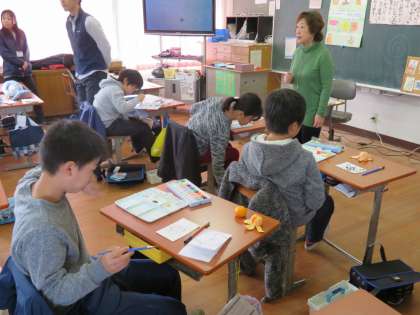 4年生は、地域の絵の先生に、絵手紙づくりを教わりました。