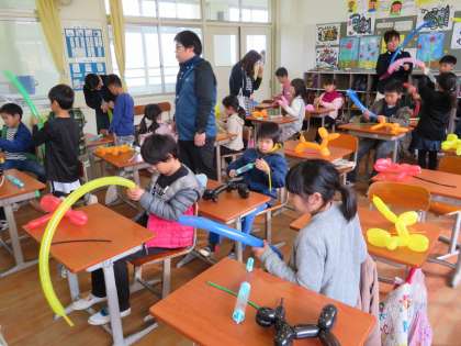 2・3年生は、バルーンアートを教わりました。はじめは、風船が割れるのがこわかったけど、慣れてきたら、楽しくてたまりません。