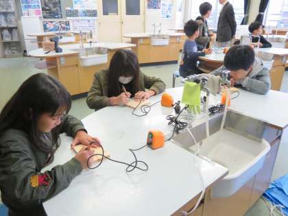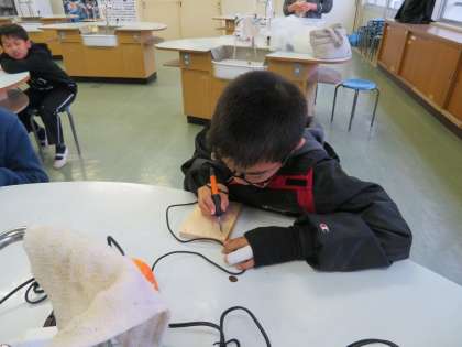 後半には、焼きごてを使って、ウッドバーニングを楽しみました。みんな思い思いに、板を焼いて、デザインし、部屋かざりをつくりました。
