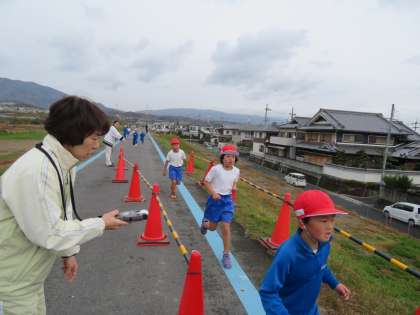 ゴールの瞬間。長かった1kmが終わり、ほっとする時間がやって来ました。1年生は、初めての大会でした。