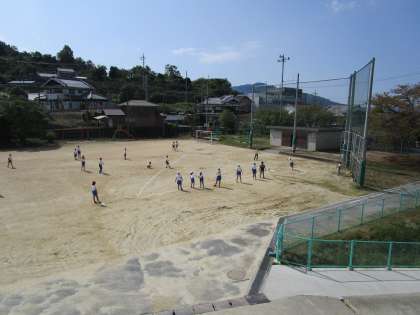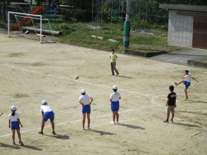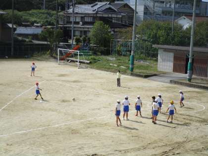 少し暑さが戻ったかなという天気のなか、運動場でキックベースボールを行いました。
