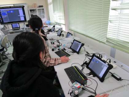 前のモニターを見たり、先生に教えてもらったりしながらプログラムを作っていきます。