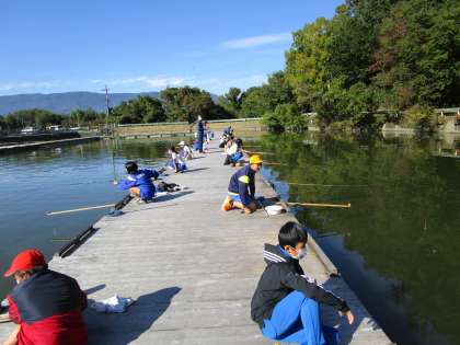 本日、2度の延期となっていた6年生のヘラブナ釣りを行いました。