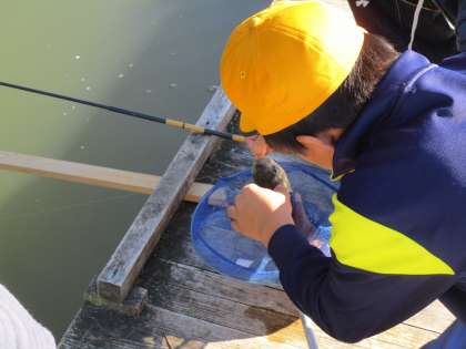 なかには7〜8匹釣った児童もいて、終わりの時間が来てもまだまだ釣って