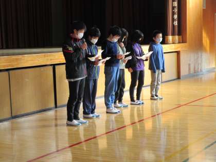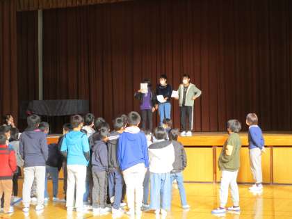ズなど、新しい児童会のメンバーが考えたものをみんなは楽しそうに答え