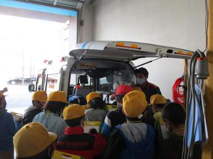 普通の救急車では走れないような狭い道をこの救急車で走ります。