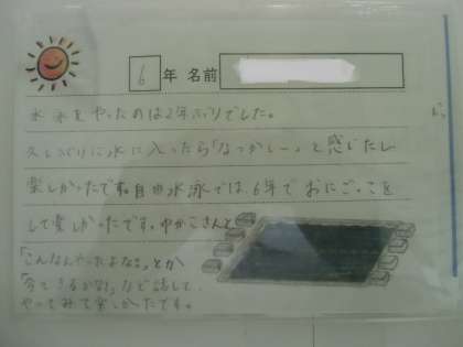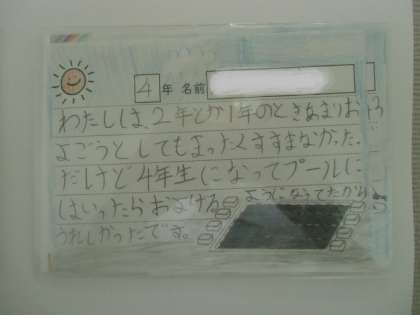 校内掲示板に掲示しているプール水泳についての感想文を一部紹介します。