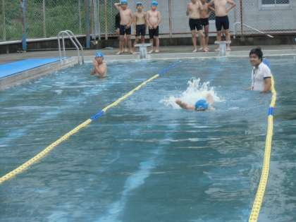 5・6年生のプール水泳の様子です。今日の練習で、はじめて25mを泳ぐことができた児童が5名いました。コツを知ったときの子どもの成長スピードの速さを目の当たりにしました。