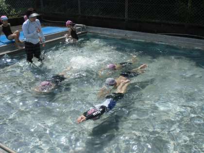 1年生がプールに入りました。蹴伸びの練習をしっかりしているので、だんだん上手になってきています。