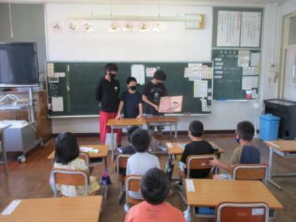 昨日のことですが、図書委員会の児童が3グループに分かれて低学年の教室で読み聞かせをしてくれました。この取組は低学年からとても好評で楽しみにしてくれています。これからもよろしくお願いします。
