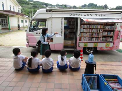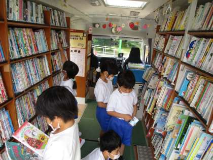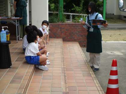 最初に学校司書の先生からブッキーで本を借りるときの注意を聞きました。