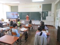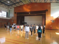 新聞紙じゃんけんは新聞紙の上に立ち、前で4・5年生がじゃんけんするので園児は負け...